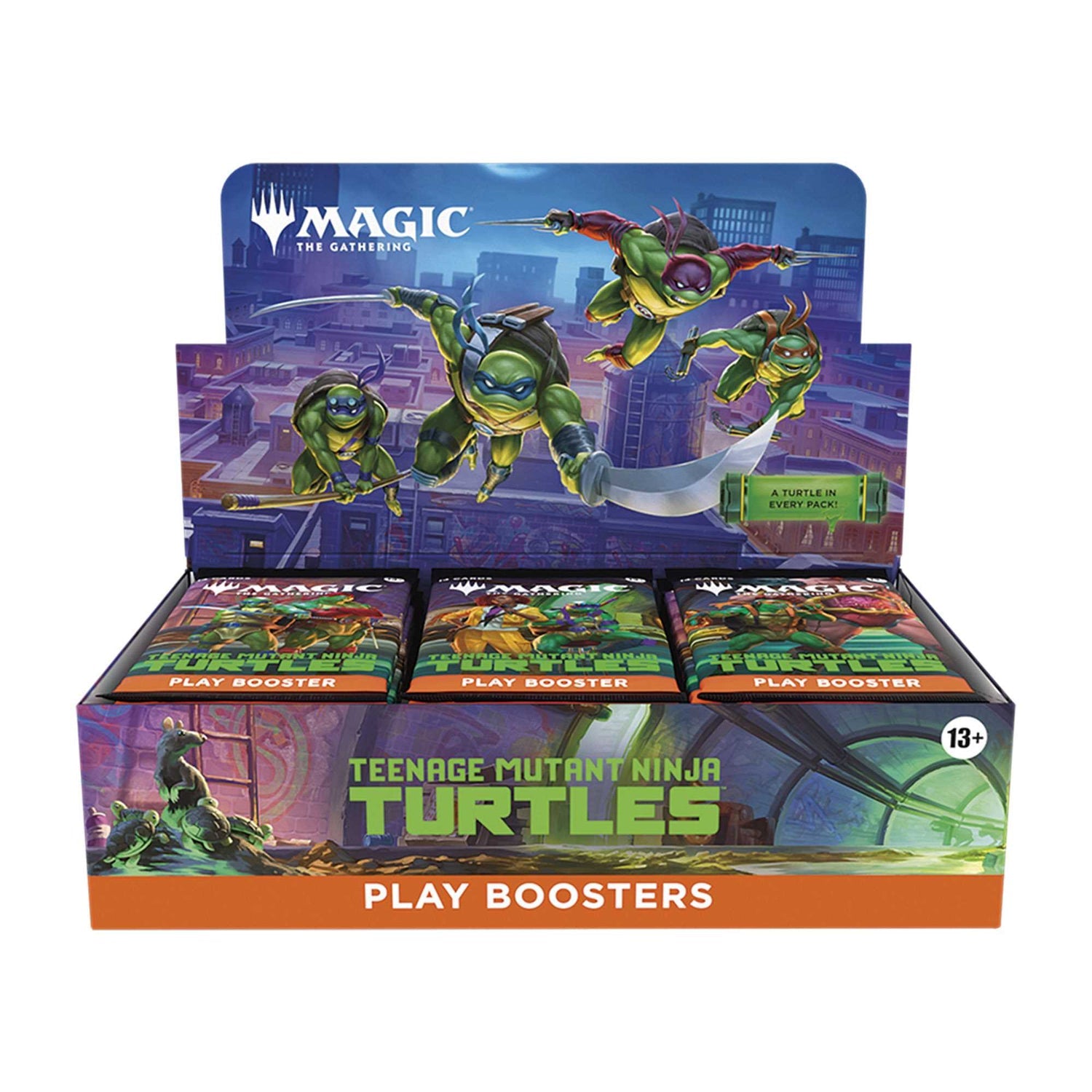 Each Magic: The Gathering | Teenage Mutant Ninja Turtles Play Booster box includes 30 Play Boosters, each of which contains the following: